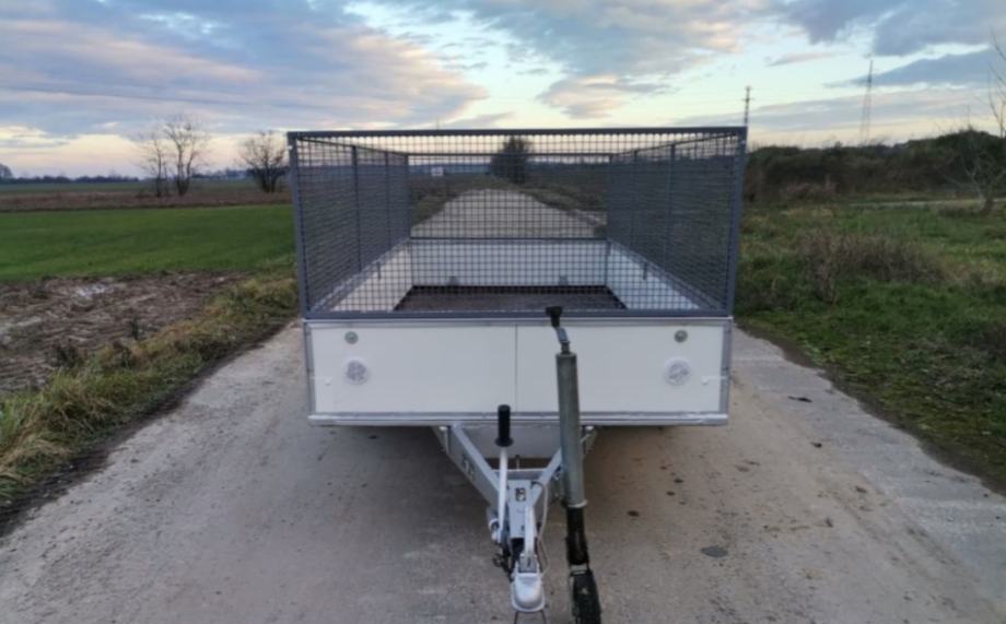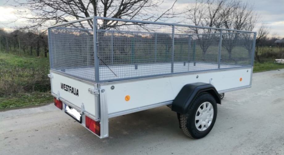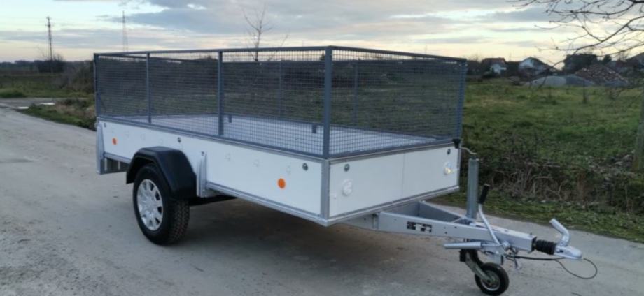 Prodajem auto prikolicu u izvrsnom stanju, najveća dopuštena masa 1200 kg, jake, čvrste i stabilne konstrukcije. Prikolica ima ručnu, pomoćni kotač i naletnu kočnicu.