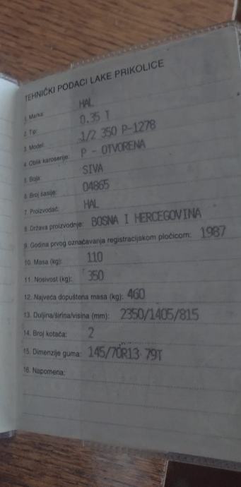 Prodajem navedenu prikolicu. Registrirana do 28.08.2026.