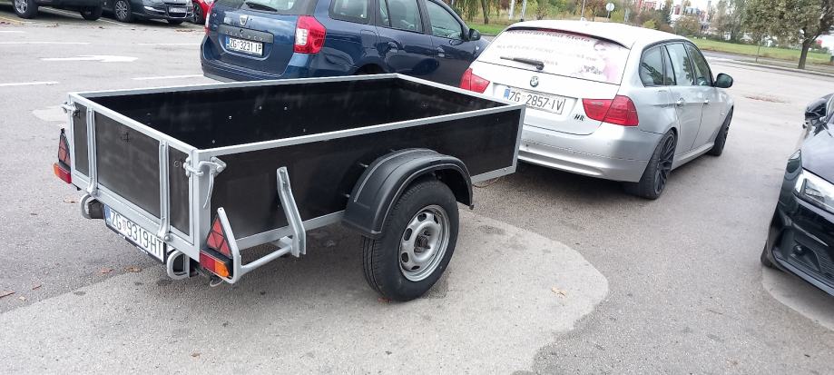 Auto prikolica, 2,20x1,05, 0,4....registrirana pod laka prikolica....registrirana 3 godine....tehnička nosivost 1t...jako čvrsta, stabilna i jaka prikolica, s naletnom kočnicom....nove pakne. Sajle, gume, lampe....uređena...cijena 1250eura