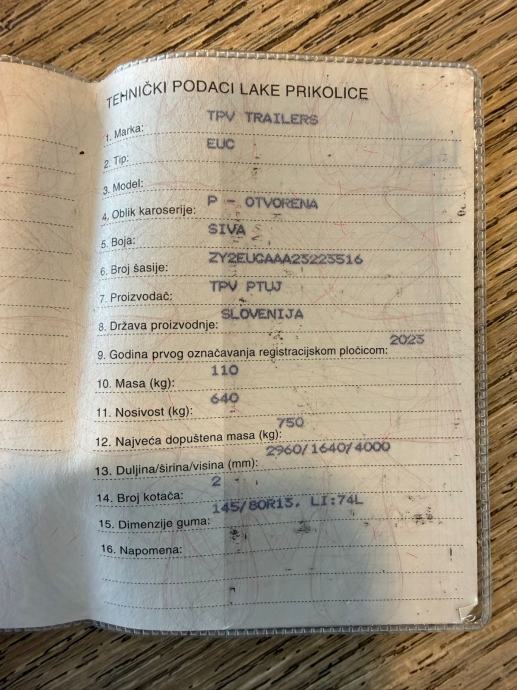 - Prikolice do 750 kg