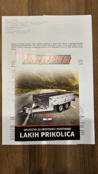 Prodajem Neptun TR1, jednoosovinska prikolica do 750kg, može na B kategoriju.