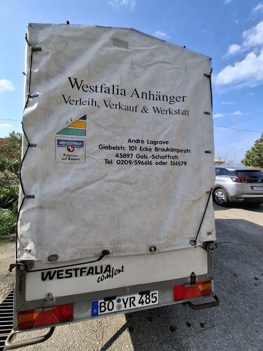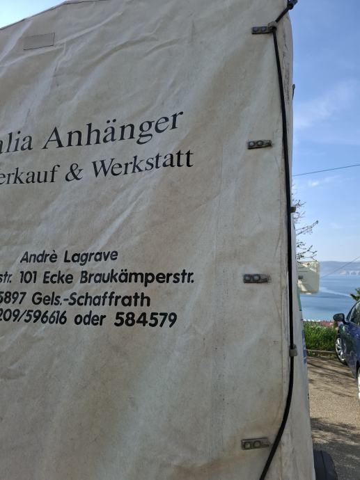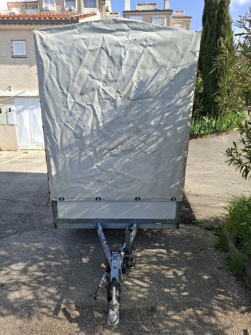 Prikolica Njemačke proizvodnje, kvalitetna. Mala oštećenja kopči od zadnje bure