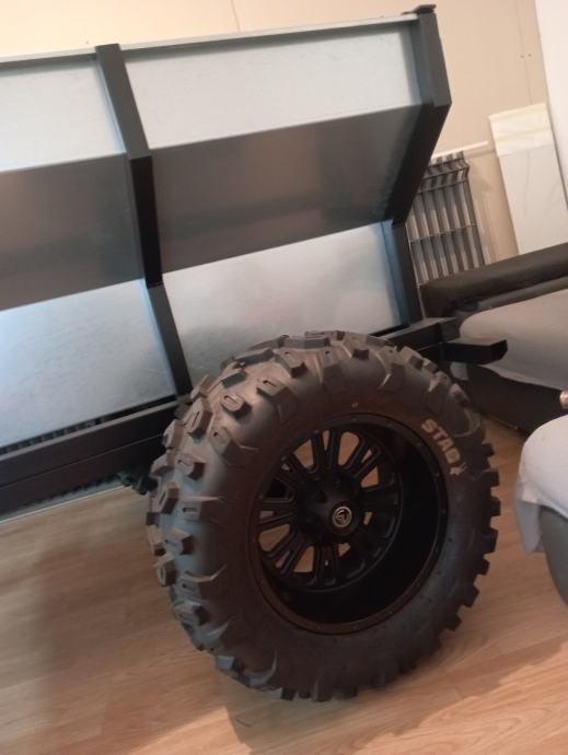 Prodajem prikolicu za ATV ,UTV quad ..izuzetno robusnog izgleda potpuno nova nikad korištena ,kućne izrade ..varenje spojeva je obavljala ovlaštena firma koja se bavi zavarivanjem..spojevi vareni argonom ..osovina orginal iz auto prikolice hr. do nosivosti 750 kg.. aluminijske felge moose ..gume STAG 26x11 r 14 .mogućnost otvaranja zadnje stranice ..i mogućnost dizanja korita ..(kip) cinčane stranice od 2 mm lima izuzetno čvrsto...dimenzije ukupna dužina 290 cm ukupna širina 155 cm ukupna visina od tla 121 cm .