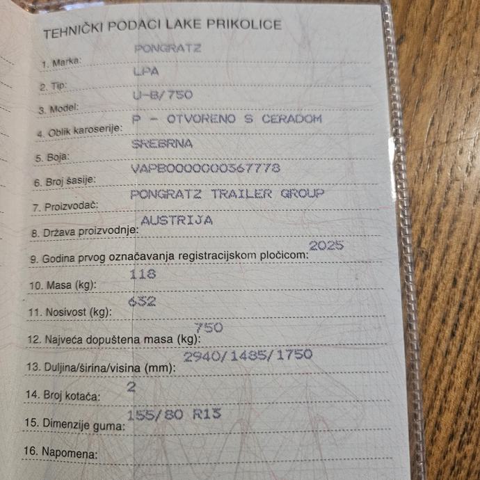Prikolica kao nova.Malo koristena.Registracija do 8/28.Cijena 699 eura.