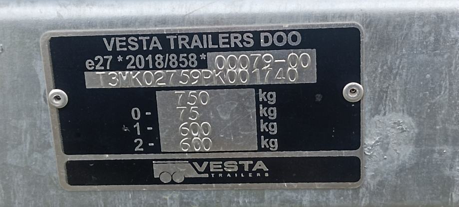 Vesta 230x136,nosivost 750 kg, 2025 god, reg do 2028, stanje novo , 2-3 puta vozila, cijena fixno 1500 eura, mob:091/222-022O