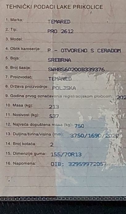 Prikolica dimenzija utovarnog prostora 264 ×126 ×153 cm,registrirana još 2 godine ,b kategorija arnjevi cerada vožena jako malo...otvaranje prednje i zadnje stranice ...