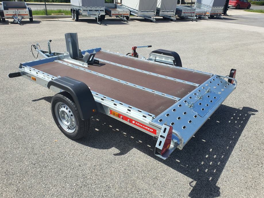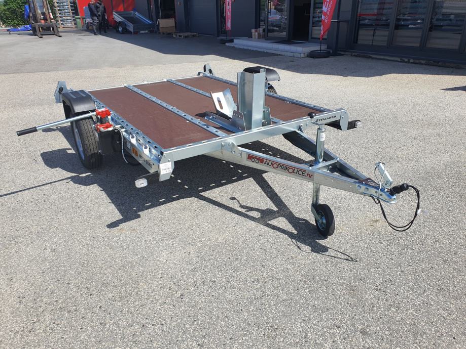 Auto prikolica Temared MOTO QUAD 2616 namijenjena je za prijevoz quadova i motocikala. Ovu prikolica izrazito je praktična za utovar jer se njezina platforma spušta u razinu ceste, pa je utovar izrazito jednostavan. Prikolica je opremljena ručnom hidrauličnom pumpom za spuštanje i dizanje platforme, utovarnom rampom iz jednog komada, potpornim kotačićem montiranim na rudo, drvenom protukliznom podnicom, multifunkcionalnim svjetlima, te 7-pinskom električnom instalacijom. Dimenzije platforme su 260x160 cm, a ukupna dopuštena masa je 750 kg. Od dodatne opreme izdvajamo: dodatni štenderi za prednji kotač motocikla.