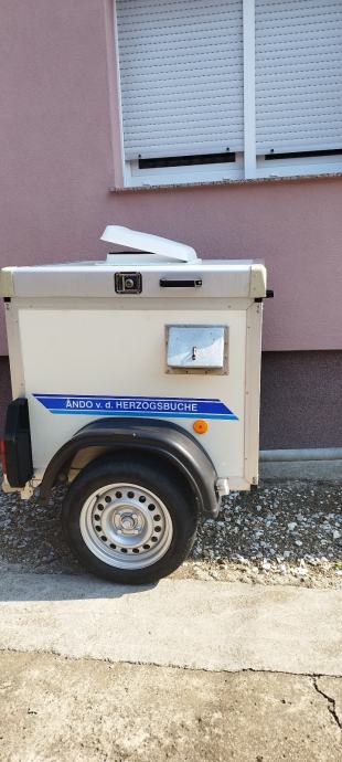 Prodajem jako očuvanu prikolicu za pse, njemačkog proizvođača WT metal, sva je od aluminija i pocičanog željeza, registrirana 3 godine, dimenzije sanduka 1x1x1 metar, s posebnim pretincem za stvari na krovu te ventilacijom.... 1350 eura 0989437641