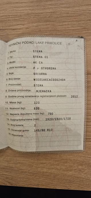 Svi podaci o prikolici pišu u prometnoj na slici.