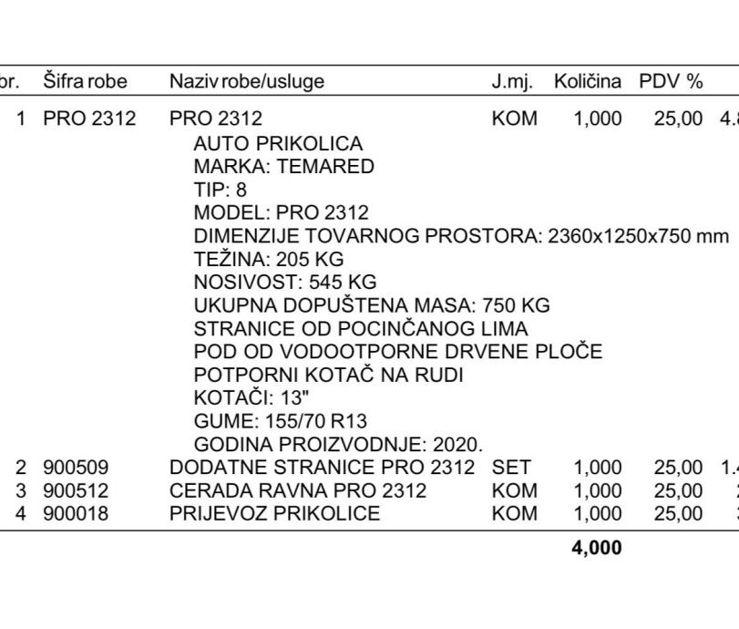 Prikolica kupljena 2020 godine.