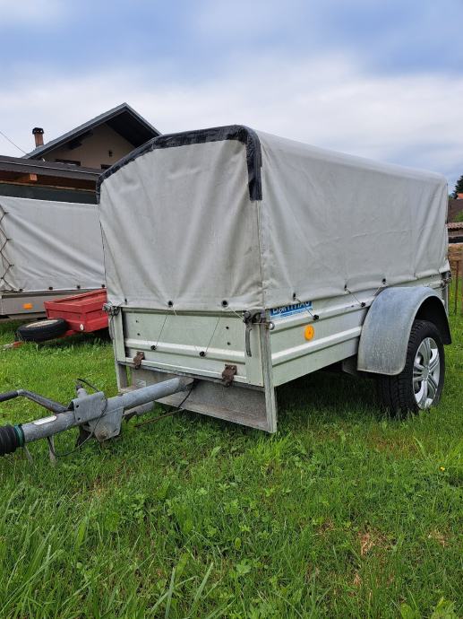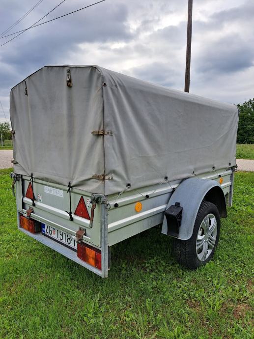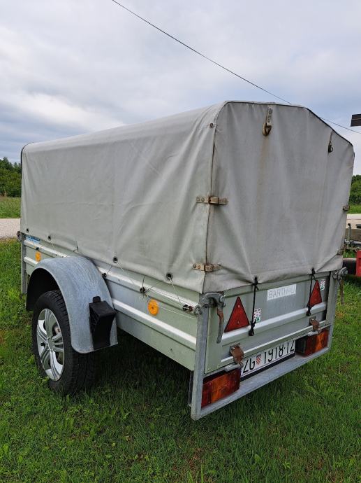 Prodajem auto prikolicu sa naletnom kocnicom registriranu godinu dana,ukupne nosivosti 1000kg,prikolica u odlicnom stanju kao sto se vidi i na slikama,prednja strana se otvara,cerada upisana u knjizicu, cerada citava,prikolica jako cvrsta,pod citav, struja ispravna..Dimenzije tovarnoga prostora 205x107.. Cijena 1200eura za pravoga kupca nije fixsno za sve zvat na broj 091-365-6853