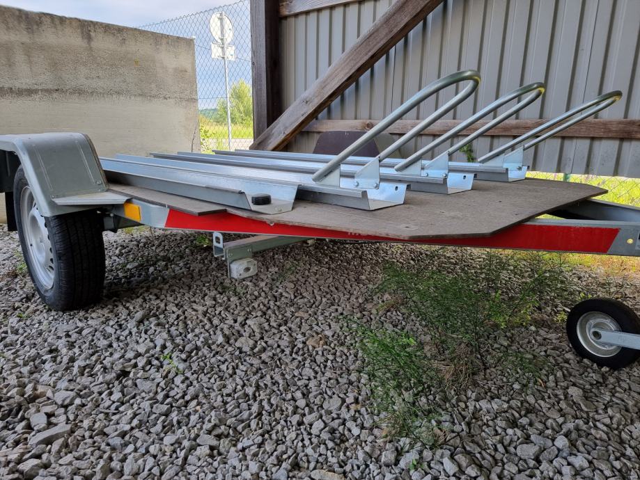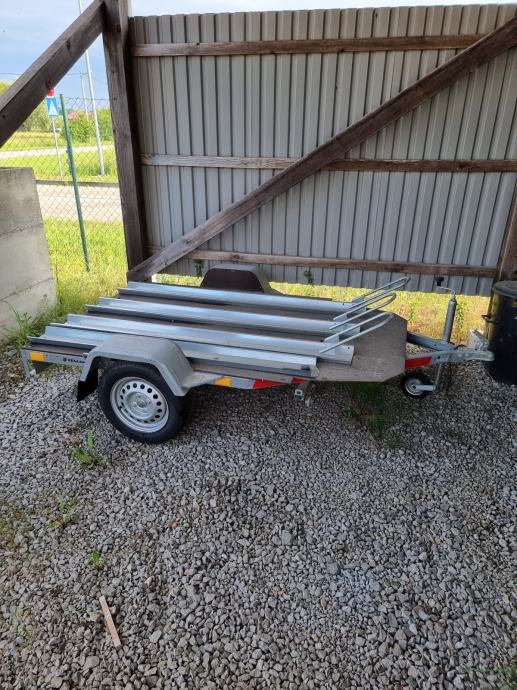 Prikolica za 3 motocilkla, nekorištena. Stanje novo. Cijena nove 8700kn. Prodajem za 5600kn s PDV-om. Prodajem zbog kupovine veće.