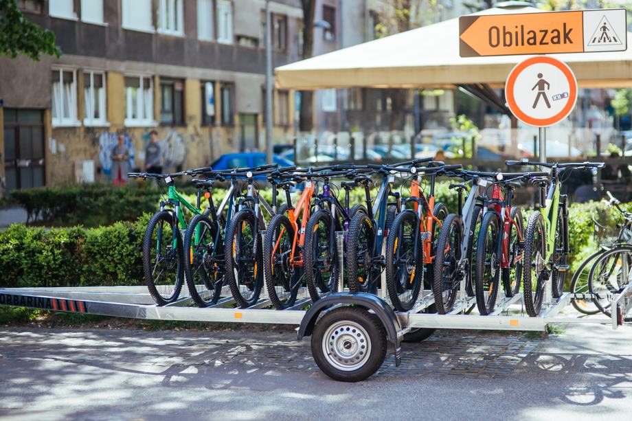 Specijalna namjenska prikolica za prijevoz električnih i klasičnih MTB bicikala nosivosti cca. 520 kg uz mogućnost montaže 6-10-14 ili više bicikala. Prikolica je vruće cinčana. Opremljena je torzionom osovinom s vodootpornim kugličnim ležajevima, svi vijci i matice su nehrđajući vruće cinčani,. Prikolica je atestirana i homologirana pri CENTRU ZA VOZILA HRVATSKE.