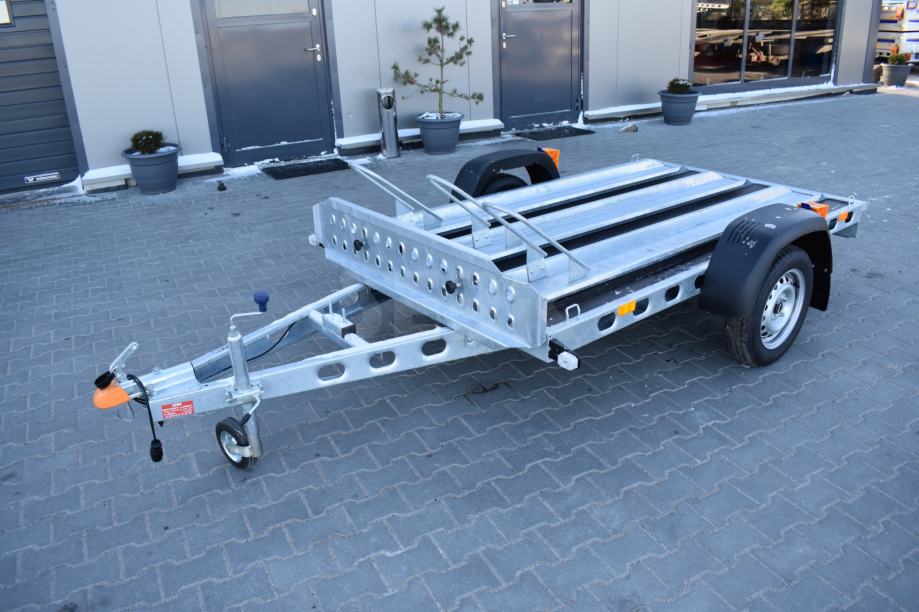 Pozivamo Vas da kupite potpuno novu, jednoosovinsku, laku prikolicu bez kočnica sa odobrenjem za prijevoz motocikla. Ne zahtijeva tehnička ispitivanja.