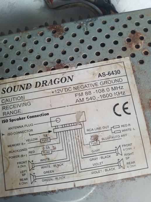 Auto radio cd SOUND DRAGON AS-6430 ispravan i radio ( sa antenom ) i CD ali ponekad ( češce ) ne izbacuje CD. Tko se razmije riješi problem, i zato za samo 15 E !!!