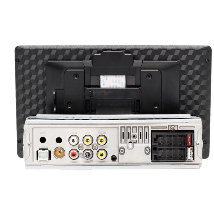 Auto radio i multimedijalni player, USB/SD/AUX, dvostruki zaslon, osnovi zaslon na prednjoj ploči i 7,0" TFT LCD zaslon na dodir sa motornim pokretanjem, višejezični meni, promjenjiva boja svjetlosti tipki i pozadinskog osvjetljenja, reprodukcija slika i video sadržaja, bežična komunikacija via Bluetooth, Hand Free, vanjski mikrofon čitač kartica microSD / TF, USB priključak. Radio AM / FM sa RDS funkcijom, 2+1 x RCA izlaz za pojačalo, 2+1 x RCA video ulaz, 2+1 x RCA video izlaz, ulaz za prednju i zadnju kameru, 3.5mm AUX ulaz, mogućnost priključka dva monitora za putnike na zadnjem sjedištu, dimenzije 178 x 50 x 163 mm Kompatibilan sa iOS i Android uređajima.