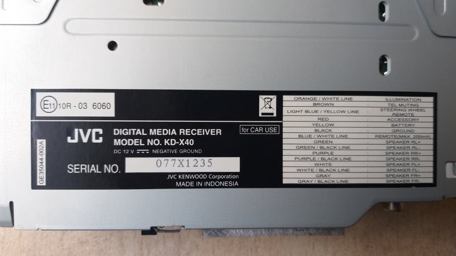 Autoradio JVC KD-X40 spada u srednju klasu autoradija sa snagom 4x50W i impedancom od 4 Ohma. Posjeduje AUX IN priključak, USB ulaz te ima daljinski upravljač. Posjeduje pripremu za hand free telefoniranje ali je potrebno nabaviti JVC adapter KS BTA100 te mikrofon. Radio je malo korišten bez i najmanjih oštećenja ili ogrebotina. Savršeno radi, ima čist kristalni zvuk.