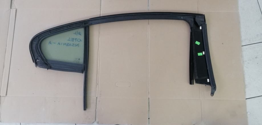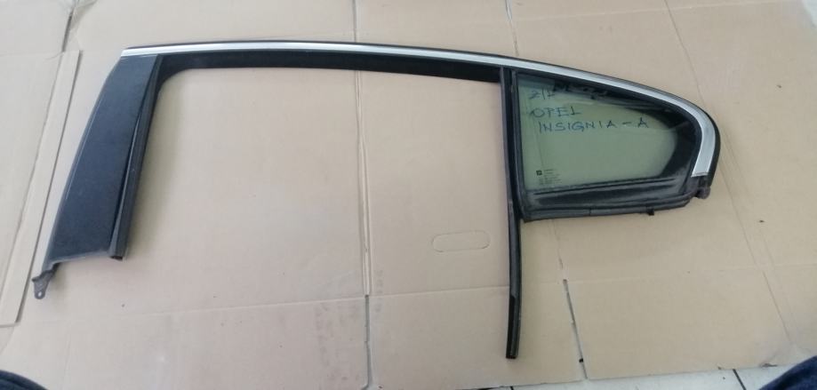 Staklo stražnjih, zadnjih Lijevih vrata, malo, za Opel Insignia - A (4 i 5 vr.), sa ukrasnom lajsnom - chrom i širokom oblogom prednjeg dijela vrata