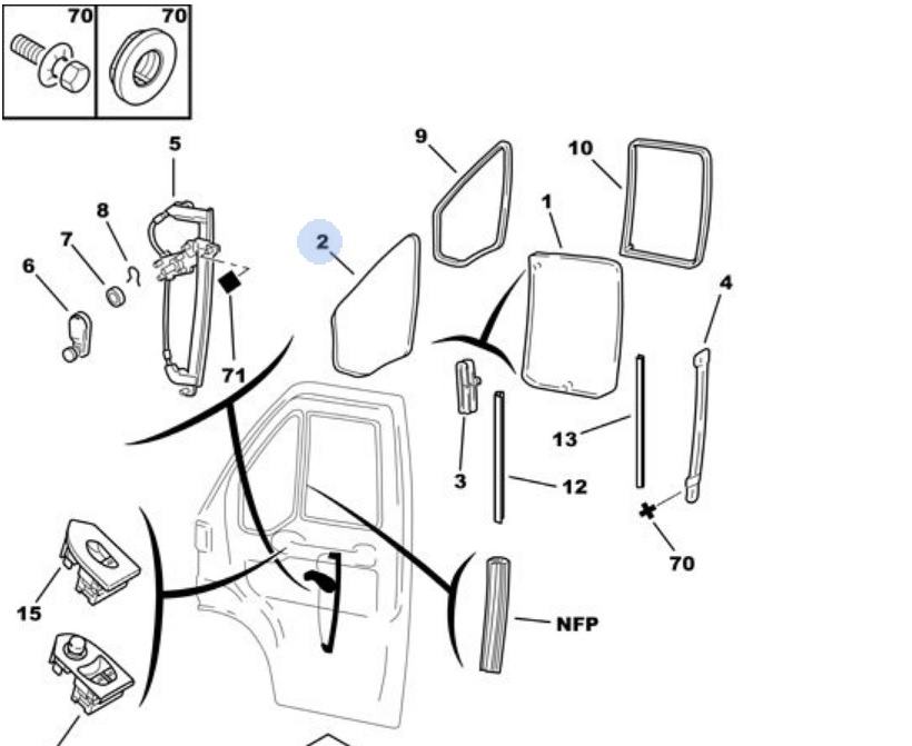 Trokut staklo desnih vrata Peugeot Boxer Citroen Jumper Fiat Ducato 1994-2006 zeleno