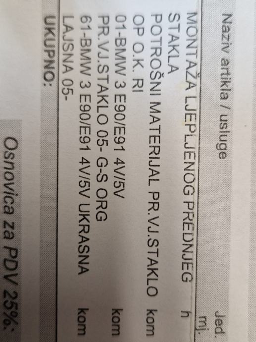 Novi vjetrobran tj. šoferšajba