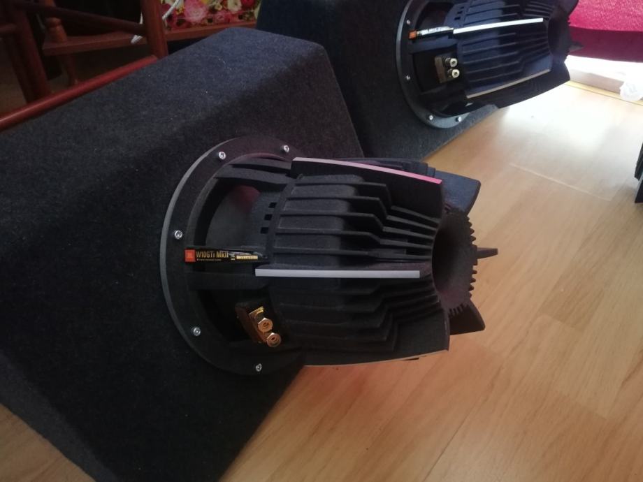 Na prodaju su JBL W10GTI MKII hi-end subwooferi. (2 komada) Odlični SQ subwooferi sa DDD motorom (JBL patent) 6+6 Ohm zavojnice uz vrlo malo izobličenja, vrlo masivni i sposobni odsvirat frekvencije 20-1000hz sa odstupanjima od +- 3db! Korišteni ukupno 5-6 sati za test na 200-500W! NOVO! Nemaju nikakvih oštećenja. U Hrvatskoj im je cijena bila 3000-3550kn po komadu, vani i po 20-50% većoj cijeni. Trenutno moguća prodaja samo u paru i sa BR kutijom.. Opcija: još 2 kompresijske kutije (svaka za 1 zvučnik). Iako su prava rijetkost u Hrvatskoj oni koje će ovo zanimat će već sigurno znat sve o JBL GTI subwooferima. Molim samo ozbiljne kupce koji znaju što traže, i bez zamjena!