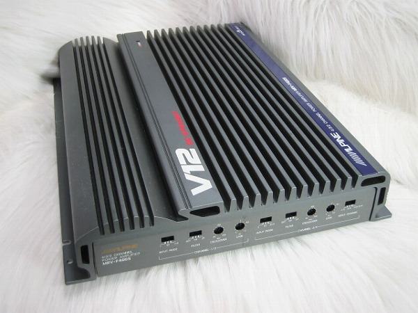 Vrhunsko autopojačalo Alpine MRV-F400S, 4/3/2 kanala, 4x80W RMS, 2x80W+1x180W RMS, 2x180W RMS, 2-4 Ohm, filter skretnica za sub woofer, mogućnost reguliranja frekvencije sub woofera. Težina 4 kg.