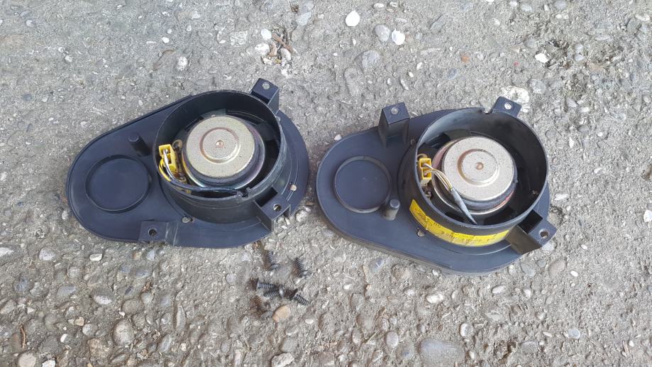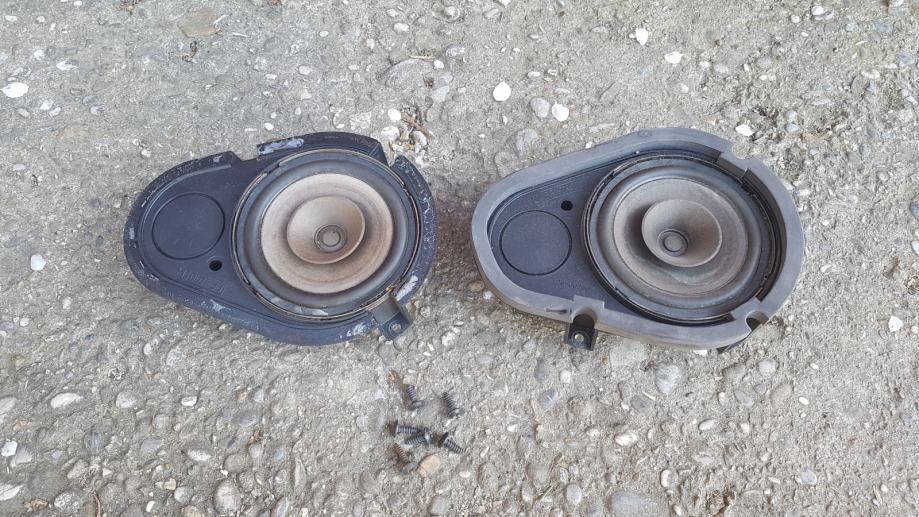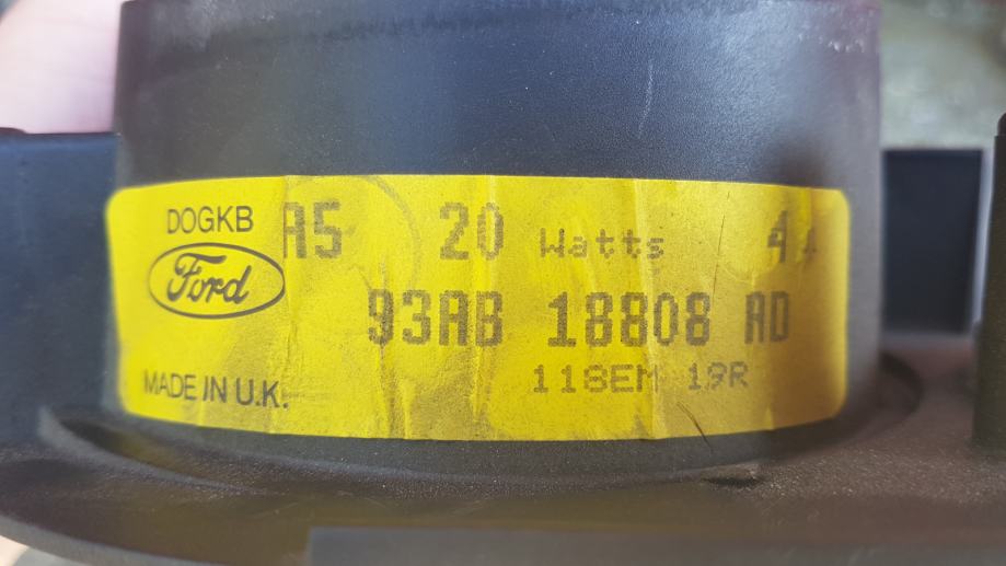 Prodajem originalne zvučnike prednjih vrata za Ford. Bili su u Escortu iz 1998. godine i u odličnom su stanju, 100% ispravni. Promjer samih zvučnika je 12 cm, dok je snaga istih 20 W. Na jednome fali izolacija (vidi se na prvoj slici). Uz zvučnike dolaze već spojeni kraći kablovi, te svih 6 originalih šarafa. Kataloški broj i drugi podaci vidljivi su na zadnjoj slici. Prodaju se isključivo oba u paru, dakle ne prodajem po komadu. Original Ford.