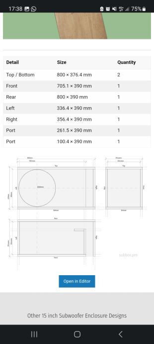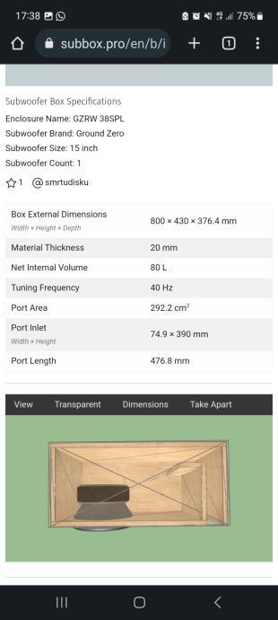 Također prilažem dimenzije kutije koja je rađena prema online kalkulator i kvalitetno je napravljena od 2cm debelog mdf drva.