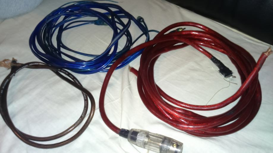 Prodajem set kablova za auto pojačalo, Naponski kabel 4,7m + 30cm za osigurač 16mm2, 1m kabel za masu 8mm2, 1m kabel za masu od 16m2, 5m RCA kabel sa remout žicom na sebi. Uz Kablove poklanjam kućište i osigurač kućište je malo spucalo al je u funkcionalnom stanju.