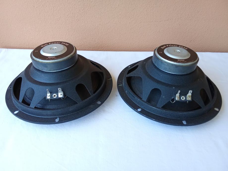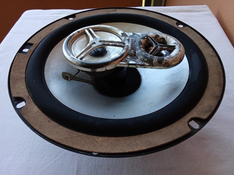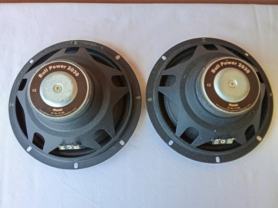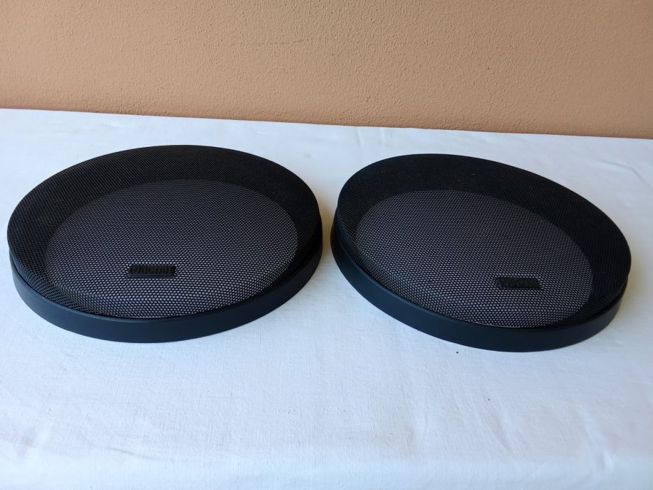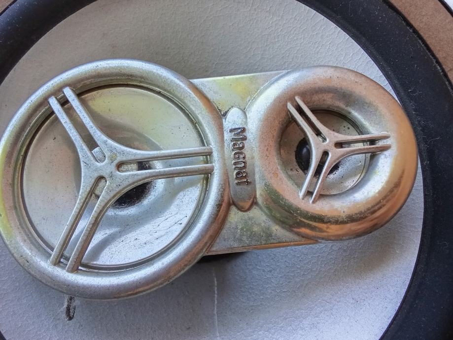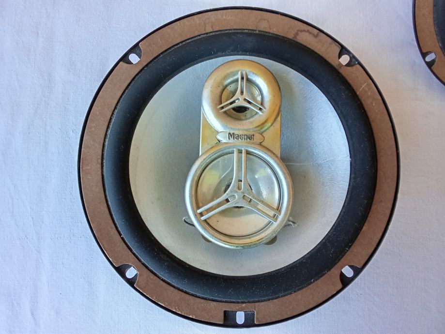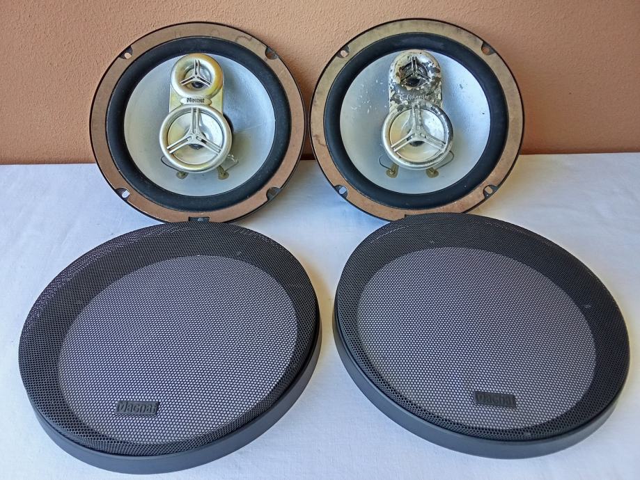 Isključivo u paru za 25 €, prodajem potpuno ispravne trostazne koaksijalne zvučnike za auto, sa mrežicama, marke Magnat Bull Power 2030. Maksimalna snaga svakog je 150 W, RMS snaga 75 W, vanjski promjer aktivnog dijela ovjesa 178 mm, vanjski promjer ometalnog obruča košare 210 mm, idealan promjer rupe za ugradnju je 188 mm, dubina ugradnje 80 mm, a masa 960 g.