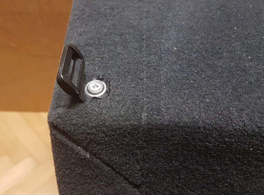 kutija je mala kompresijska, napravljena od 22mm osba, tapicirana u crno,