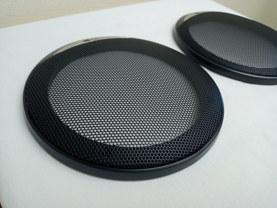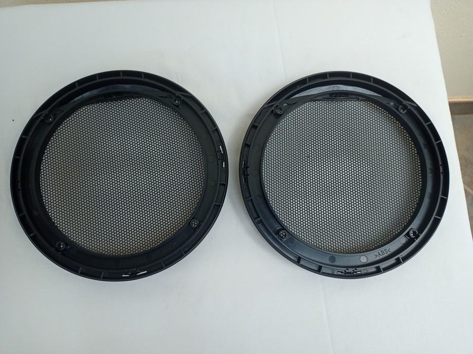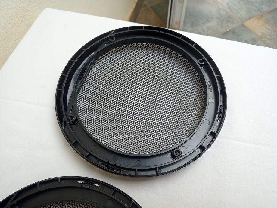 Isključivo u paru za 5 €, prodajem par novih mrežica za kružne zvučnike, kojima je vanjski promjer ovjesa basa oko 140 mm, a vanjski promjer obruča košare 165 mm. Unutarnju promjer plastičnog prstena mrežice je 144 mm, a vanjski promjer 185 mm. Razmak između središta susjednih rupa za vijke je 111 mm, a razmak između središta dijametralnih rupa za vijke je 157 mm. Fotografije priložene uz oglas prikazuju ovdje oglašene predmete.