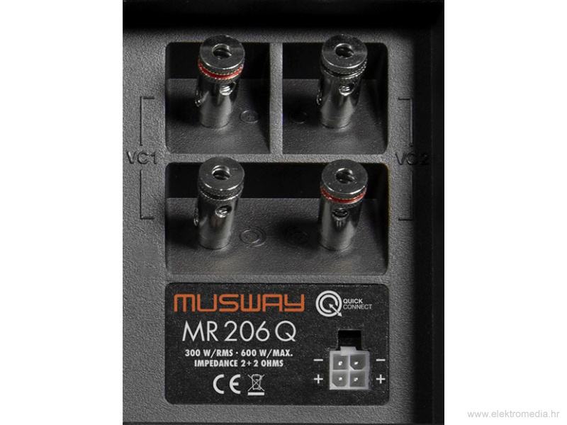 Čvrsto dizajnirana MDF kućišta prekrivena su visokokvalitetnim crnim tepihom te se skladno i diskretno uklapaju u svaki interijer vozila. Nadalje, bez iznimke, svi modeli su opremljeni s QUICK CONNECT utičnicama i mogu se jednostavno spojiti pomoću dodatnog kabela za povezivanje, na primjer, na MUSWAY M6 i njegov QUICK CONNECT priključak. Naravno, MUSWAY sustavi subwoofera mogu se spojiti i na konvencionalne priključke s utičnicom.