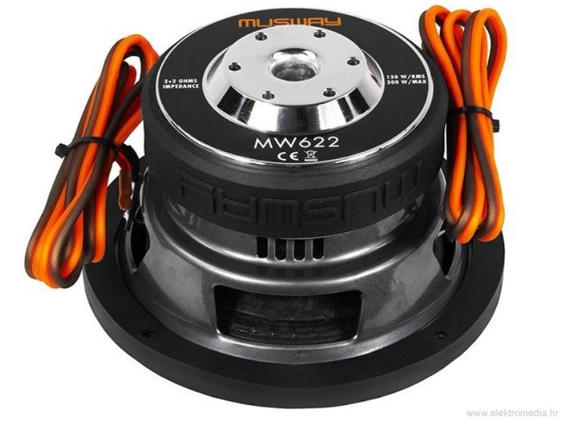 Musway MW622 je subwoofer promjera 16.5 centimetara. Namijenjen je ugradnji u bas refleks kutiju volumena 14 litara. Podnosi snage do 300W (150W RMS) i ima 2 zavojnice otpora 2 Ohma. Mali ali snažan subwoofer sa svojim već unaprijed instaliranim spojnim kabelima, maleno bas čudo nudi glatke snažne basove u malim kućištima. MW622 je dotjeran za visoke performanse i oduševljava svojim prošivenim okvirom od pjene, elastičnim papirnatim konusom i snažnim magnetom - apsolutno uvjerljiv u svim disciplinama sa snažnim parametrima.