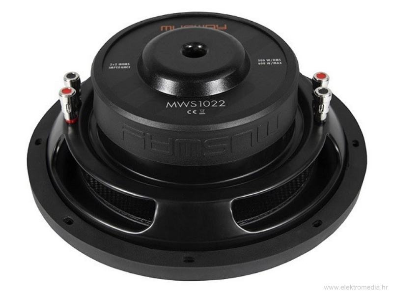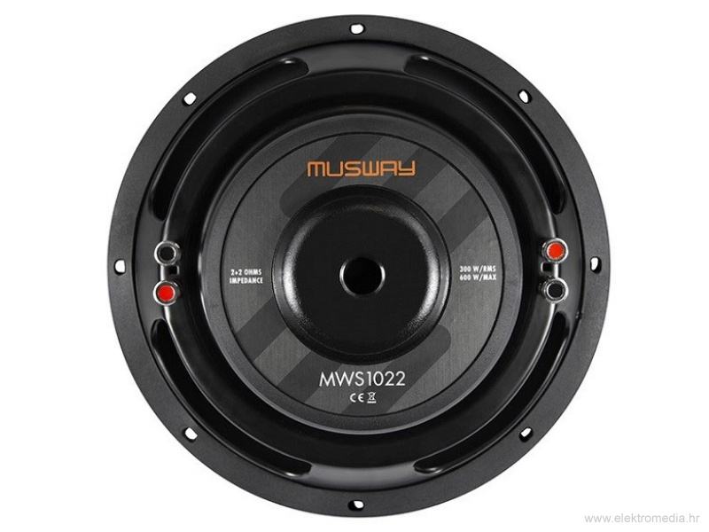 Posebno ravan subwoofer bi naravno trebao zvučati dobro i mora biti robustan. Zato Musway koristi posebne i vrlo tvrde čunjeve izrađene od kompozitnih materijala staklenih vlakana i ugljika. Nije se uštedjelo ni na zvučnicima: wooferi imaju magnete od 1,13 kg ili 1,27 kg i pokreću ih dvostruke glasovne zavojnice od 50 mm 2 + 2 ohma, koje su također vrlo dugo namotane. S Xmax vrijednostima od +/- 15 mm, oba woofera osiguravaju pristojan hod. S 250 ili 300 W RMS, također su vrlo otporni, tako da se ne moraju praviti kompromisi.
