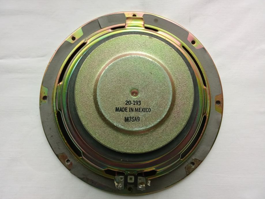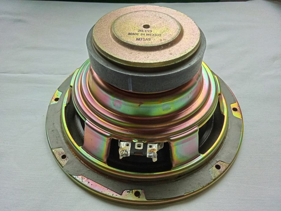 Potpuno je ispravan i neoštećen. Vanjski promjer ovjesa je 180, vanjski promjer metalnog obruča košare 216, a promjer rupe na kutiji mora biti 180 mm. Njegova masa je 1765 grama, a na njemu su dva magneta promjera 80 mm i debljine 15 mm. Maksimalna snaga je 250 W, RMS snaga 100 W, otpor 4 Ohma, osjetljivost 93 dB, frekvencijski odaziv od 30 do 1500 Hz.