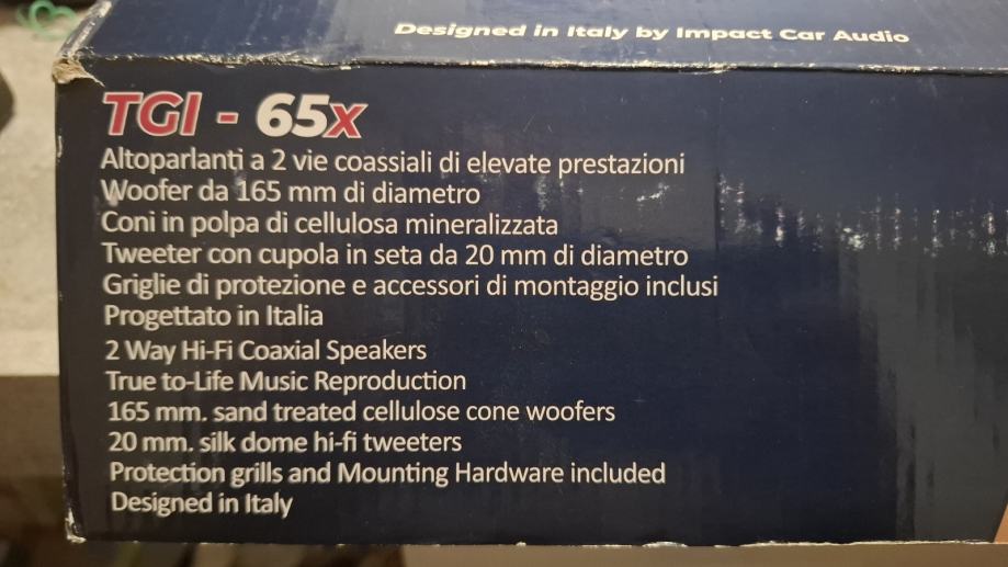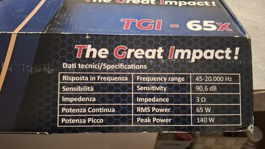 Tehničke specifikacije koaksijalnog zvučnika Impact TGI 65X