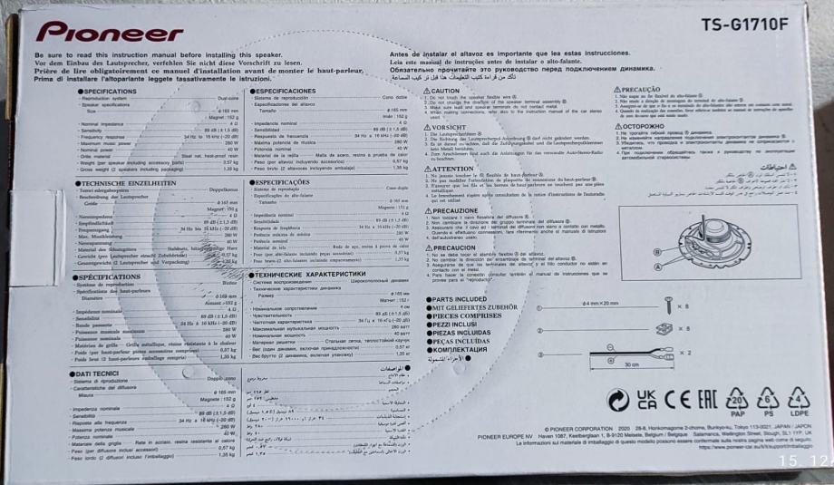 Prodajem nove, zapakirane auto zvučnike, TS G1710F, 4 komada, promjera 17 cm, snage 280 Watt. Zvučnici su kupljeni u Hrvatskoj trgovini, te