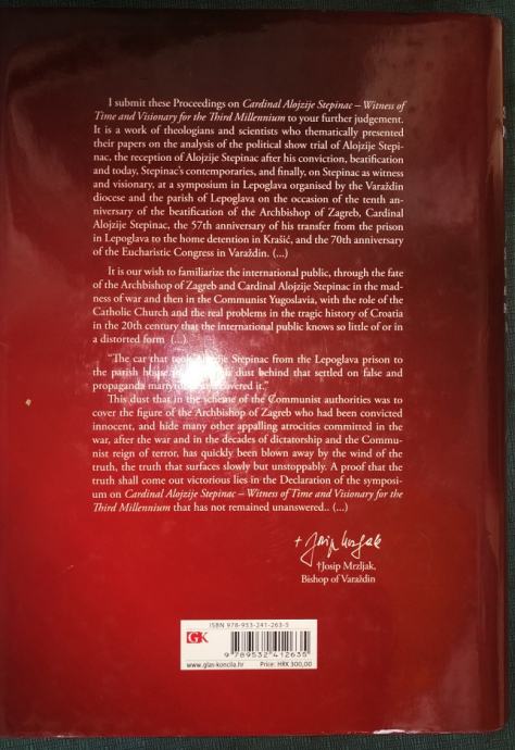 Knjiga "Alojzije Stepinac - Svjedok vremena i vizionar za treće tisućljeće" na engleskom jeziku.