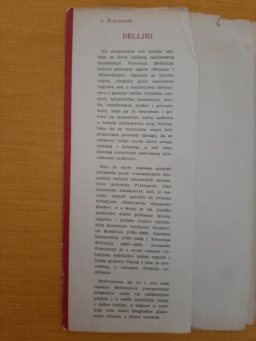 Na stranicama ove knjige opisuje se život velikog talijanskog skladatelja Vincenza Bellinija, autora poznatih opera Norma i Mjesečarka.