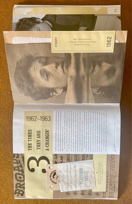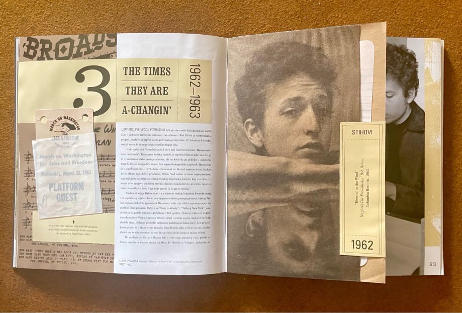 Ovaj spomenar Boba Dylana jedinstvena je i nesvakidašnja knjiga koja nam donosi pogled na ključno razdoblje Dylanova života od njegovih samih početaka pa sve do umalo kobne motorističke nesreće nakon koje se povukao na neko vrijeme. Da je uistinu riječ o nesvakidašnjoj knjizi uvjerit ćete se već prilikom prvog prelistavanja. Mnoštvo popratnih materijala dolazi uz ovu knjigu kako bi priča koja govori o tih deset godina Dylanova života bila što slikovitija i živopisnija. Svega tu ima, od programa sa njegovih nastupa preko različitih ulaznica, plakata, prospekata, preko 100 fotografija i ilustracija pa sve do replika izvornih, rukom pisanih tekstova nekih od njegovih najpoznatijih pjesama. Ovo unikatno izdanje niti jedan ozbiljniji ljubitelj glazbe ne bi smio ne imati u svojoj polici s knjigama.