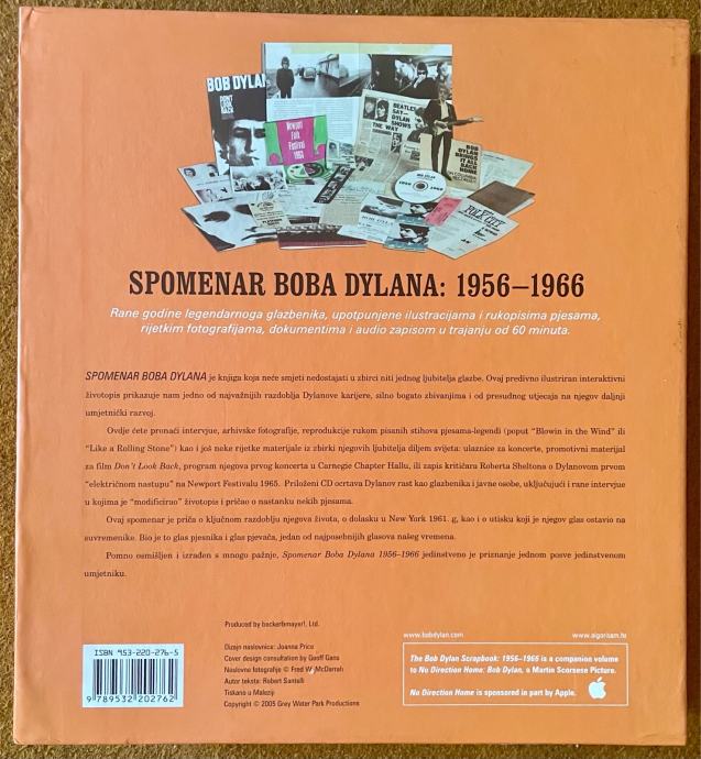 Bob Dylan spomenar 1956-1966, autor teksta Robert Santinelli, naklada Algoritam, Zagreb, 2005. godina, prvo izdanje.