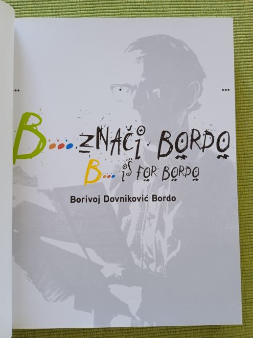 B… znači Bordo”, odnosno na engleskom “B… is for Bordo” naslov je dvojezične monografije o Borivoju Dovnikoviću Bordi, doajenu Zagrebačke škole animiranog filma. Na 272 stranice, na prvoklasnom papiru i u luksuznoj štampi, svoje mišljenje o opusu klasika crtanog filma u Hrvatskoj dali su njegovi kolege u rasponu od domaćih Ranka Munitića, Petra Krelje i Hrvoja Turkovića do stranih autora kao što su Olivier Cotte, Emanuele Bonelli, Paul Driessen, Luca Raffaelli i dr. Knjiga ne obuhvaća samo filmski opus Borivoja Dovnikovića, već i njegov strip uradci, karikature i dometi u dizajnu. Bordinih pedeset godina rada ujedno je i pedeset godina povijesti zagrebačke animacije i kulture u Hrvatskoj uopće.