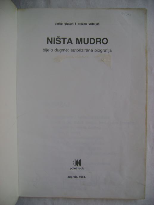 Darko Glavan & Dražen Vrdoljak - Ništa mudro - Polet rock; Bijelo dugme, autorizirana biografija - izdavač Centar društvenih djelatnosti Saveza socijalističke omladine Hrvatske, Zagreb 1981. godine, 20 x 28 cm, meki uvez, 95 stranica, bogato ilustrirano.