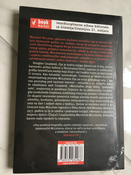 Douglas Coupland, čija je kultna knjiga Generacija X bila "mcluhanovski" prikaz kulture u fikcionalnoj formi, napisao je sažetu biografiju teoretičara medija koja život i rad čovjeka kojim se bavi tumači iznutra. Kao kanadski sunarodnjak, Coupland je idealni kroničar nevjerojatnog proroka McLuhana čija se vizija globalnog sela – danas poznatog pod nazivom internet – ostvarila u 21. stoljeću. Kako to objašnjava sam Coupland, „Marshallov drugi klišej, 'globalno selo', svojevrsna je parafraza činjenice da su elektroničke tehnologije produžetak čovjekova središnjeg živčanog sustava i činjenice da će skupne neuronske poveznice našega planeta stvoriti jedinstvenu amorfnu, konfuznu, polusvjesnu metazajednicu koja funkcionira 24 sata na dan i sedam dana u tjednu.“ Doista se možemo složiti s rečenicom koju McLuhan izgovara u filmu Annie Hall Woodyja Allena iz 1977. godine (a to je ujedno i podnaslov knjige): „Nemate vi pojma o mojemu djelu!“ Čitajući Couplandova Marshalla McLuhana možemo barem malo ispraviti tu nepravdu.
