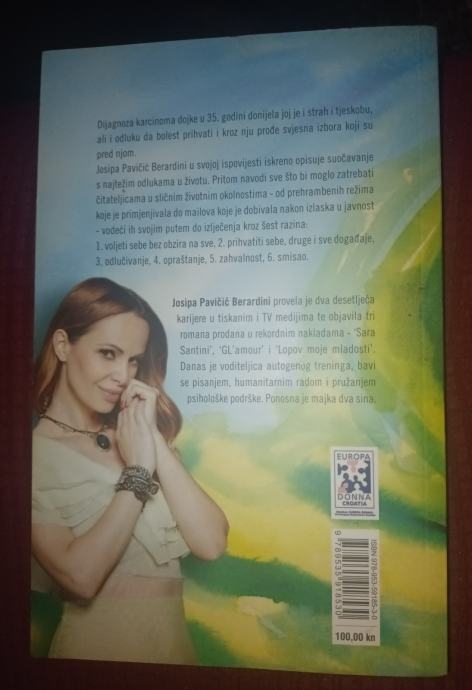 Dijagnoza karcinoma dojke u 35. godini donijela joj je i strah i tjeskobu, ali i odluku da bolest prihvati i kroz nju prođe svjesna izbora koji su pred njom. Josipa Pavičić u svojoj ispovijesti iskreno opisuje suočavanje s najtežim odlukama u životu. Pritom navodi sve što bi moglo zatrebati čitateljicama u sličnim životnim okolnostima - od prehrambenih režima koje je primjenjivala do mailova koje je dobivala nakon izlaska u javnost - vodeći ih svojim putem do izlječenja kroz šest razina: 1. voljeti sebe bez obzira na sve, 2. prihvatiti sebe, druge i sve događaje, 3. odlučivanje, 4. opraštanje, 5. zahvalnost, 6. smisao. Josipa Pavičić Berardini provela je dva desetljeća karijere u tiskanim i TV medijima te objavila tri romana prodana u rekordnim nakladama – „Sara Santini“, „GL’amour“ i „Lopov moje mladosti“. Danas je voditeljica autogenog treninga, bavi se pisanjem, humanitarnim radom i pružanjem psihološke podrške. Ponosna je majka dva sina.