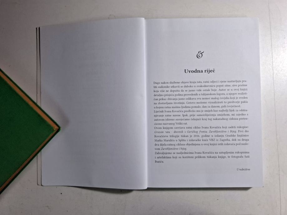 Nastavak ratnog dnevnika „Grozote rata: Dnevnik s Goričkog fronta“, objavljenog 2016. godine. Temelji se na rukopisima, dvadesetak rukom i strojem ispisanih bilježnica s brojnom korespondencijom i obiteljskim fotografijama, koje je u splitsku knjižnicu na čuvanje pohranio autorov sin Žarko Kovačić. Autor je pisao o svojim iskustvima u zarobljeničkim talijanskim logorima, u vremenu ratnih događanja i poratnih previranja od 1916. do 1919. godine.