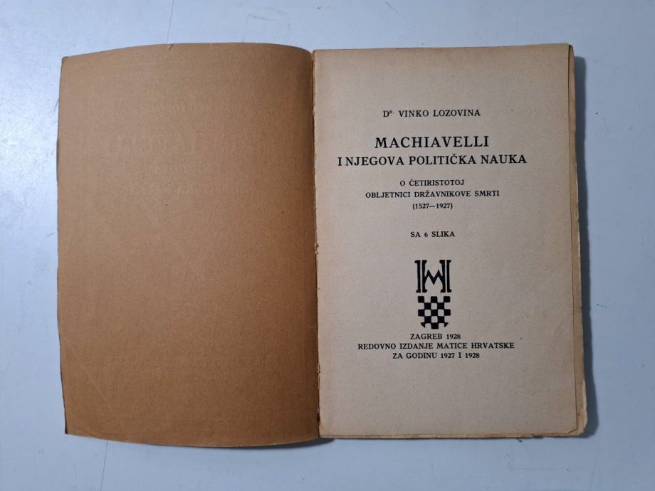 Lozovina, Vinko - Machiavelli i njegova politička nauka : o četiristotoj obljetnici državnikove smrti (1527-1927) : sa 6 slika
