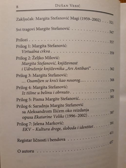 Posebno je bio mučan period nakon smrti Milana Mladenovića kad se otvoreno odvijala pljačka i eksploatiranje zaostavštine EKV-a, gdje Vesić dočarava činjenicu da nije bila riječ o okrutnosti sistema kao takvog, već da je zavladala anarhija potpuno lišena ikakvog sistema za zaštitu umjetnika i njihovih prava. A tu situaciju kad si poznat, a od toga nemaš ništa i u krajnjoj ruci više ne postojiš dočarao je Margitinim citatom: „Moj je problem što sam ovde rođena. Da se sve ovo desilo u inozemstvu, bila bih zbrinuta do kraja života.“ Dakle, okrutni dileri koji imovinski potpuno razbaštinjuju ‘socijalističku princezu’ tu se samo pojavljuju kao egzaktni egzekutori. Smjestio je time Vesić knedlu u grlo mnogima koje je poimence naveo u knjizi i naveo njihove uloge u životu Margite Stefanović, pa nije isključeno da tu neće biti još nekih ‘epiloga’ naknadno.