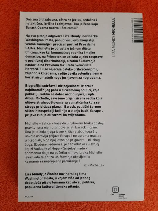 Ona zna biti zabavna, oštra na jeziku, srdačna i netaktična, izričita i zahtjevna. Tko je žena koju Barack Obama naziva “šeficom“? Na ovo pitanje odgovara Liza Mundy, novinarka Washington Posta, ponudivši u ovoj biografiji veoma zanimljiv i precizan portret Prve dame SAD-a. Michelle je odrasla u južnom dijelu Chicaga, kao kći komunalnog radnika i majke domaćice, na Princeton se upisala u jeku rasprave o pozitivnoj diskriminaciji, a zatim školovanje nastavila na Pravnom fakultetu Sveučilišta Harvard. Tu se je osjećala daleko prihvaćenijom i, zajedno sa kolegama, radije bavila volontiranjem u korist siromašnih nego jurnjavom za nagradama.